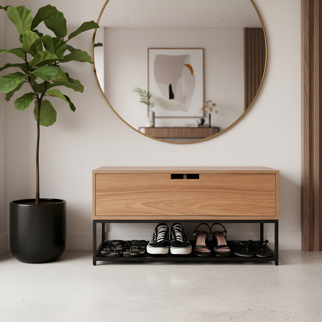 A Banco Sapateira Recamier Armário Balcão com Porta foi desenvolvida pensando principalmente na praticidade do dia a dia. Chega de sapatos espalhados pela casa!!