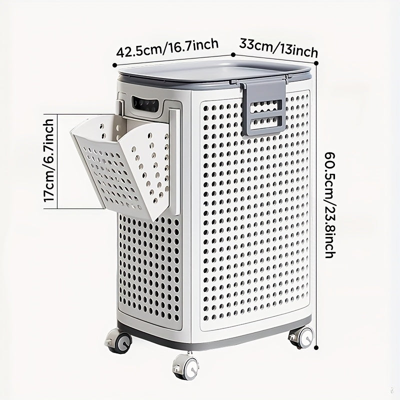 Cesto Organizador Multiuso com Rodas 70L – Estrutura Dobrável e Ventilada