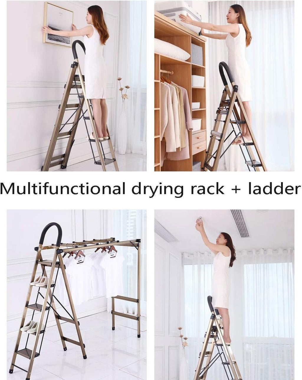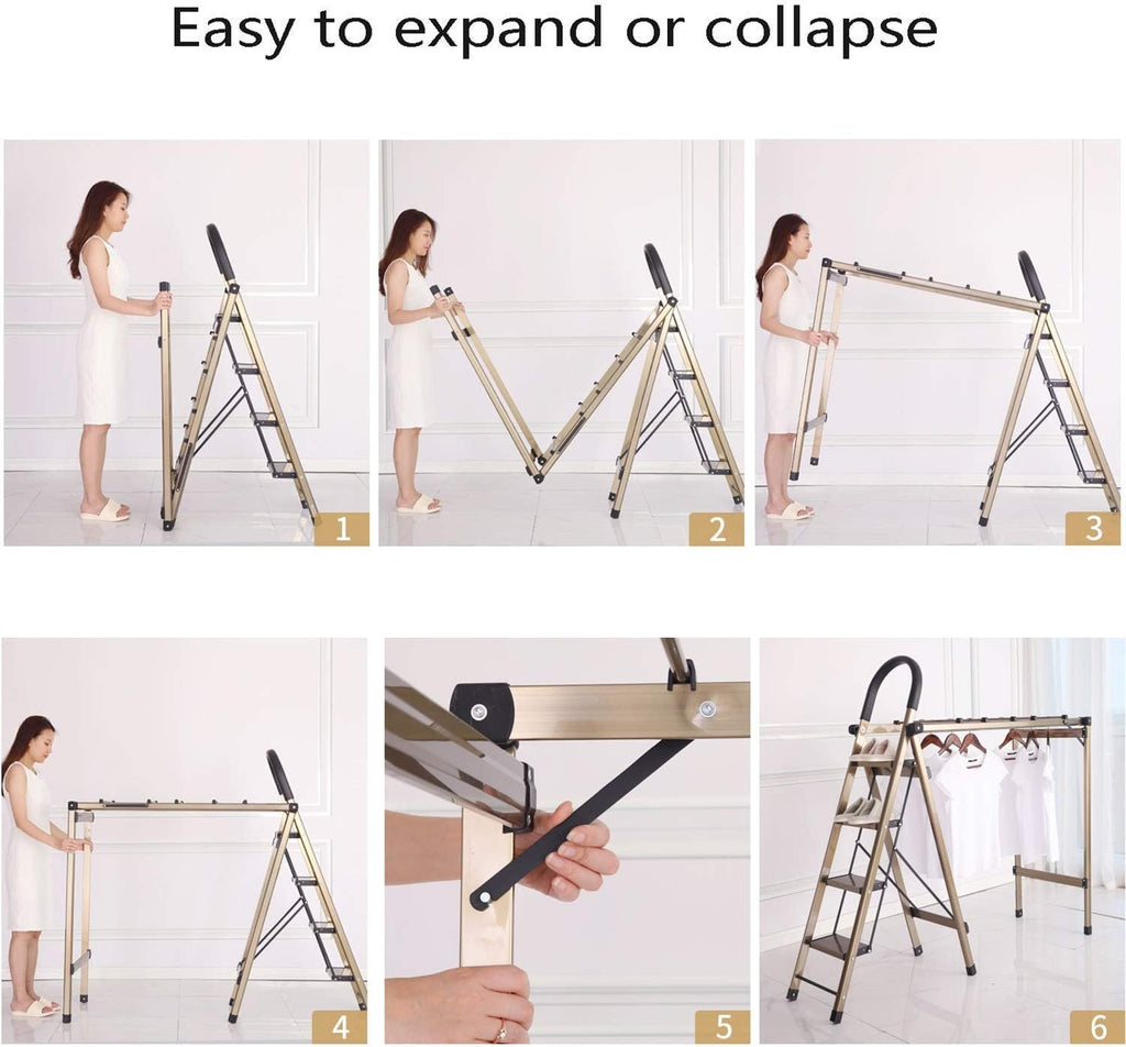 Escada Multifuncional Dobrável em Alumínio – Suporte para Roupas, Sapateira e Escada Doméstica até 150 kg